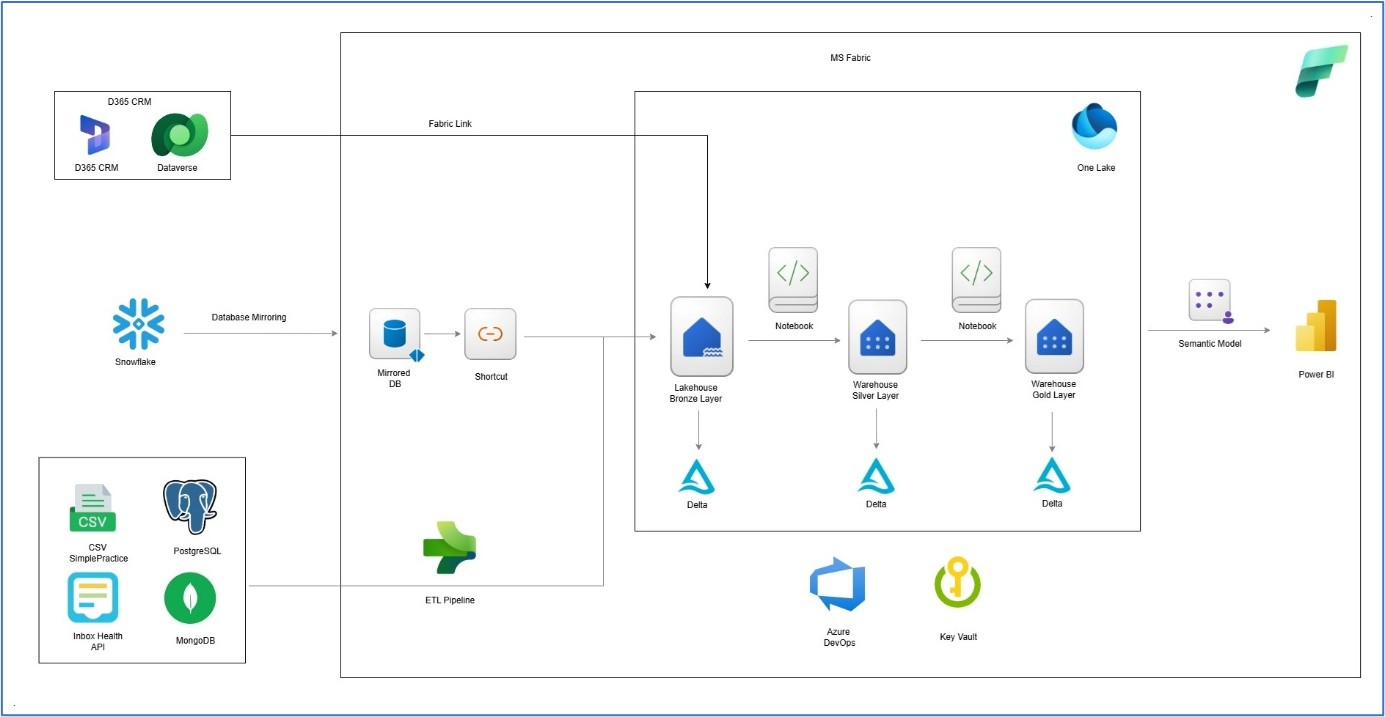The Microsoft Fabric–based data warehouse unified data from multiple EHR, payment, and scheduling systems, enabling real-time insights and measurable performance improvements across operations, finance, and clinical care.
